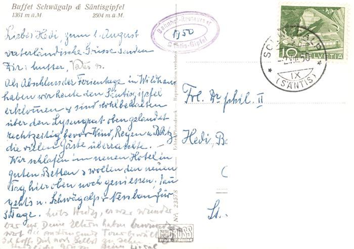 73940093 alte Postkarte Seilbahn Cable-Car Telepherique Saentis Churfirsten Glarneralpen postalisch gelaufen Erhaltung siehe scans [IrynaD87] KatCode: 22040000000400