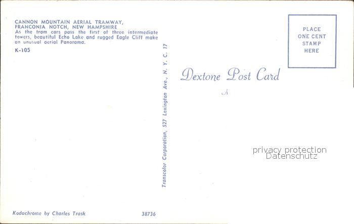 Seilbahn Cannon Mountain Franconia Notch New Hampshire postalisch nicht gelaufen Erhaltung siehe scans