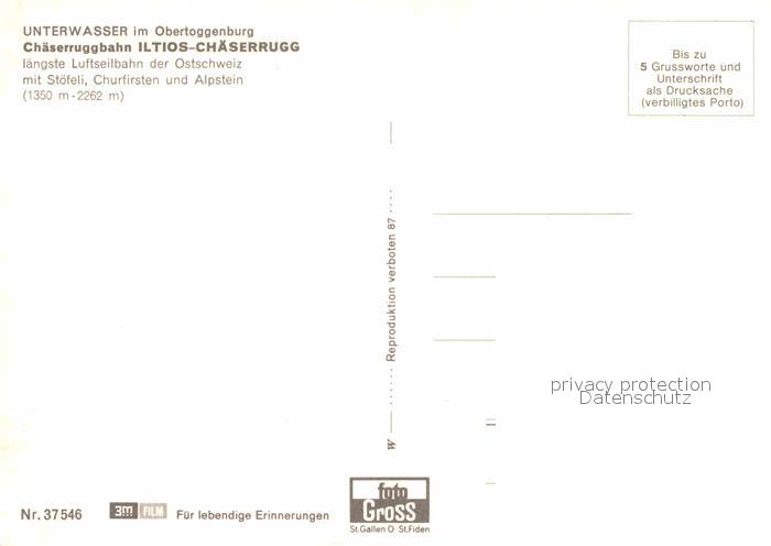 Seilbahn Chaeserrugg Iltios Unterwasser postalisch nicht gelaufen Erhaltung siehe scans [PaolaD17]
