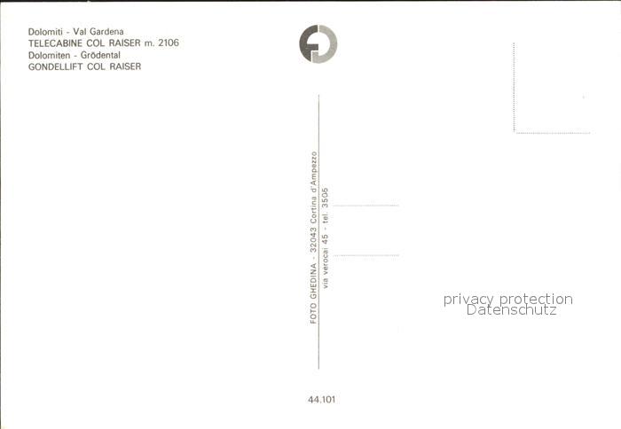 Seilbahn Col Raiser Dolomiti Val Gardena postalisch nicht gelaufen Erhaltung siehe scans