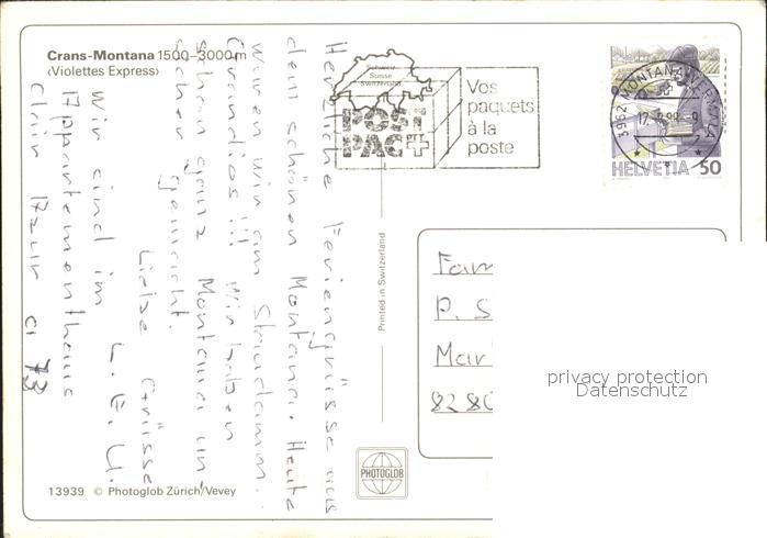 alte Postkarte Seilbahn Crans-Montana Violettes Express postalisch gelaufen Erhaltung siehe scans