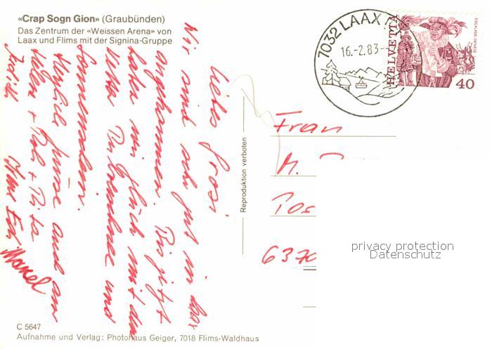 alte Postkarte Seilbahn Crap Sogn Gion Laax Flims Signina-Gruppe postalisch gelaufen Erhaltung siehe scans [PaolaD17]