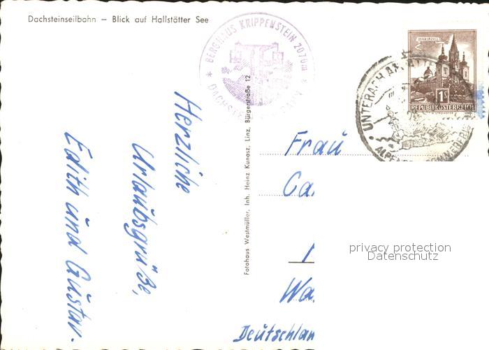 alte Postkarte Seilbahn Dachstein Hallstaetter See postalisch gelaufen Erhaltung siehe scans