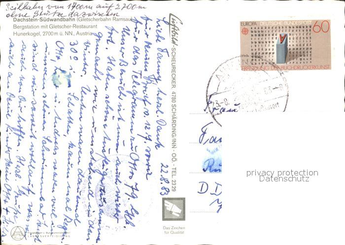 alte Postkarte Seilbahn Dachstein-Suedwandbahn Bergstation Gletscher-Restaurant Hunerkogel postalisch gelaufen Erhaltung siehe scans