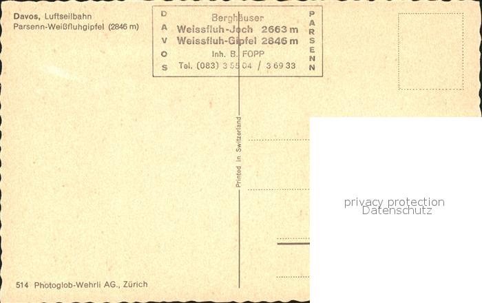 Seilbahn Davos Parsenn-Weissfluhgipfel postalisch nicht gelaufen Erhaltung siehe scans