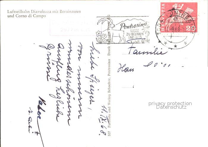 alte Postkarte Seilbahn Diavolezza Berninaseen Corno di Campo postalisch gelaufen Erhaltung siehe scans