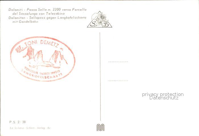 Seilbahn Dolomiti Passo Sella Forcella del Sassolungo postalisch nicht gelaufen