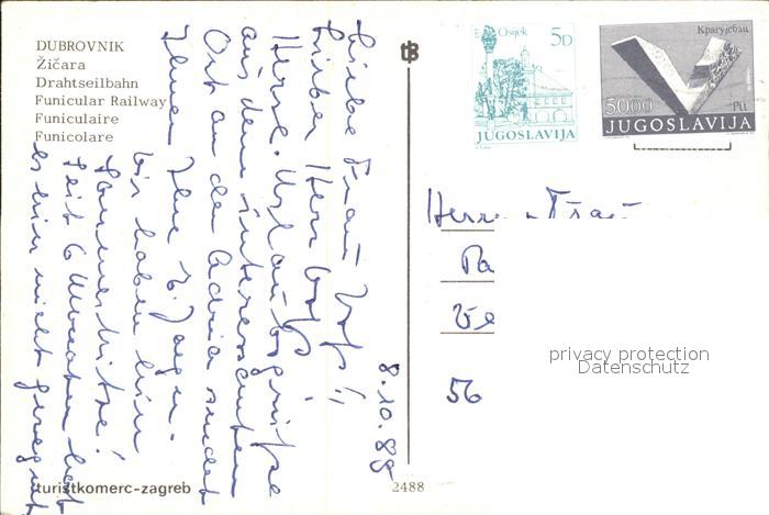 alte Postkarte Seilbahn Dubrovnik Zicara postalisch gelaufen Erhaltung siehe scans
