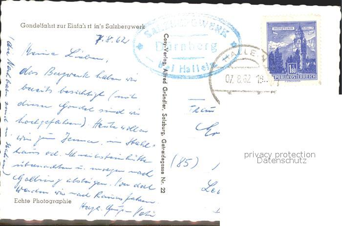 alte Postkarte Seilbahn Duerrnberg Hallein postalisch gelaufen Erhaltung siehe scans