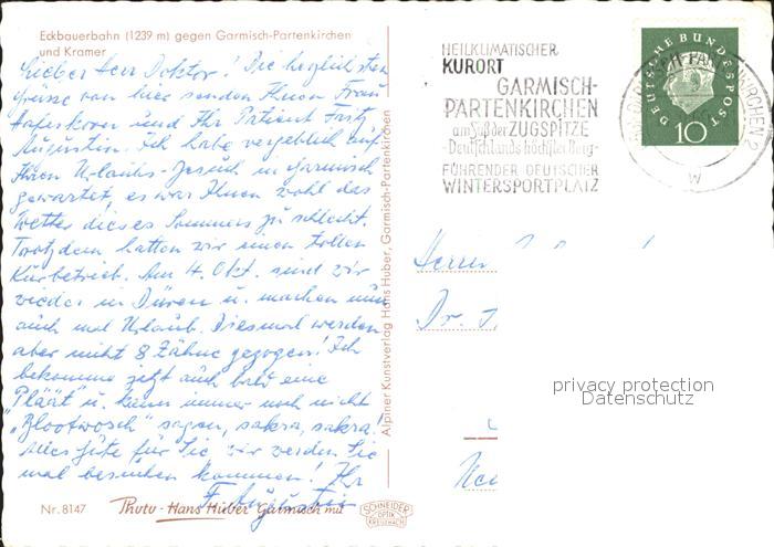alte Postkarte Seilbahn Eckbauer Garmisch-Partenkirchen Kramer postalisch gelaufen Erhaltung siehe scans