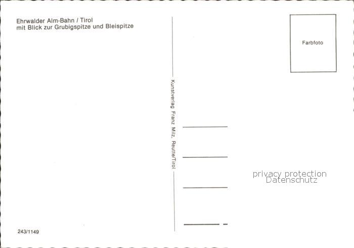 Seilbahn Ehrwalder Alm Tirol Grubigspitze Bleispitze postalisch nicht gelaufen Erhaltung siehe scans