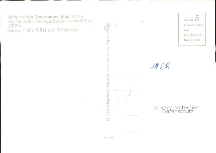 Seilbahn Enzingerboden-Weiss-See Mittelstation Tauernmoos-See Hohe Riffel Totenkopf postalisch nicht gelaufen Erhaltung siehe scans