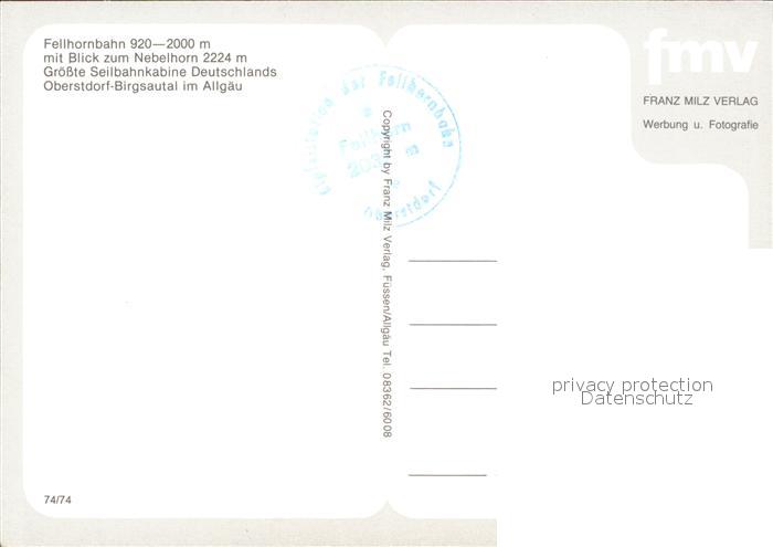 Seilbahn Fellhorn Nebelhorn Oberstdorf-Birgsautal postalisch nicht gelaufen Erhaltung siehe scans