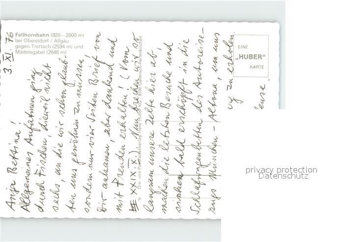 Seilbahn Fellhorn Oberstdorf Trettach Maedelegabel postalisch nicht gelaufen Erhaltung siehe scans