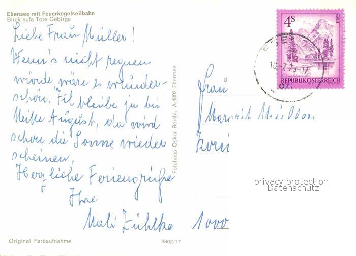 alte Postkarte Seilbahn Feuerkogel Ebensee Totes Gebirge postalisch gelaufen Erhaltung siehe scans [PaolaD17]