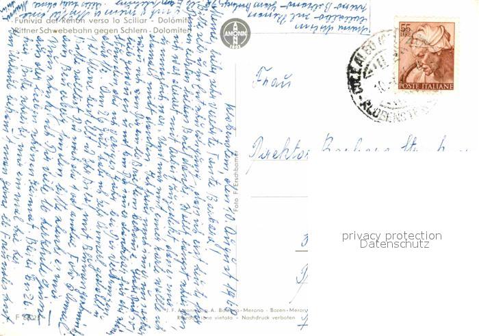 alte Postkarte Seilbahn Funivia del Renon Sciliar Dolomiti postalisch gelaufen Erhaltung siehe scans [PaolaD17]