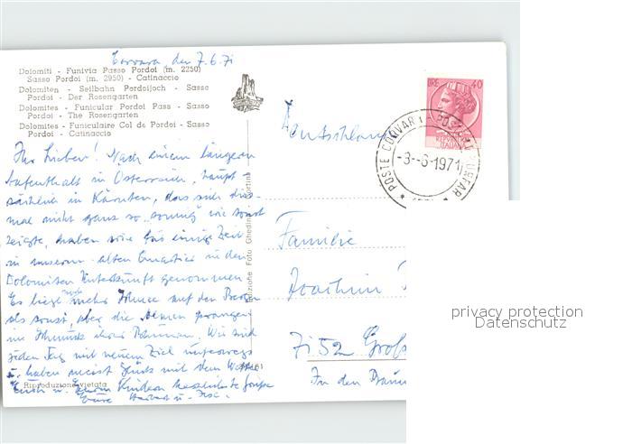 alte Postkarte Seilbahn Funivia Passo Pordoi Dolomiti Catinaccio postalisch gelaufen Erhaltung siehe scans