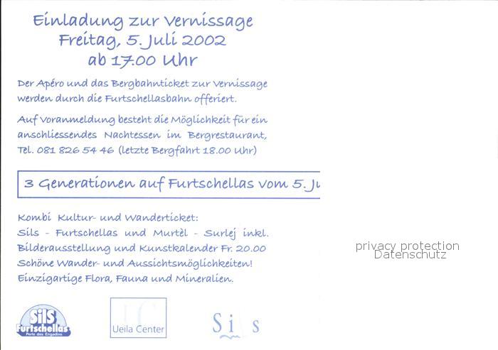 Seilbahn Furtschellas Einladung Vernissage Giovanoli postalisch nicht gelaufen Erhaltung siehe scans