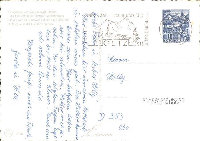 alte Postkarte Seilbahn Gaislachkogl Bergstation Gaislachersee postalisch gelaufen Erhaltung siehe scans