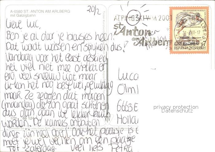 alte Postkarte Seilbahn Galzig St.-Anton am Arlberg postalisch gelaufen Erhaltung siehe scans