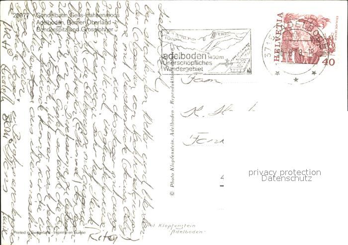 alte Postkarte Seilbahn Geils-Hahnenmoos Adelboden Bonderspitz Grosslohner postalisch gelaufen Erhaltung siehe scans