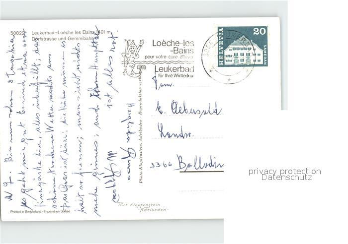 alte Postkarte Seilbahn Gemmi Leukerbad Dorfstrasse postalisch gelaufen Erhaltung siehe scans