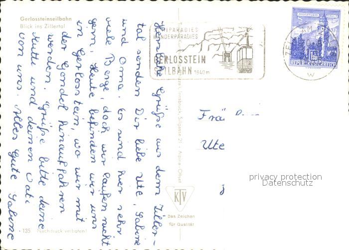 alte Postkarte Seilbahn Gerlosstein Zillertal postalisch gelaufen Erhaltung siehe scans