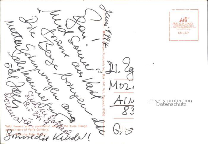 Seilbahn Gore Range Vail postalisch nicht gelaufen Erhaltung siehe scans
