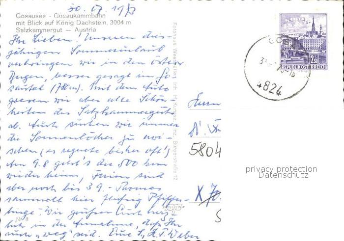 alte Postkarte Seilbahn Gosaukamm Gosausee Hoher Dachstein postalisch gelaufen Erhaltung siehe scans