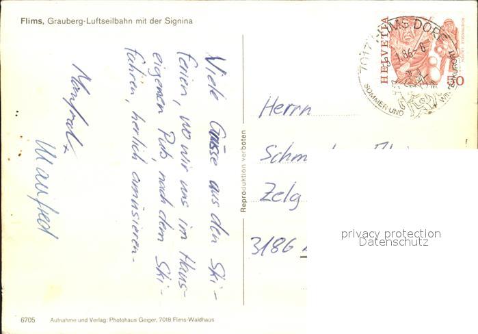 alte Postkarte Seilbahn Grauberg Signina Flims postalisch gelaufen Erhaltung siehe scans
