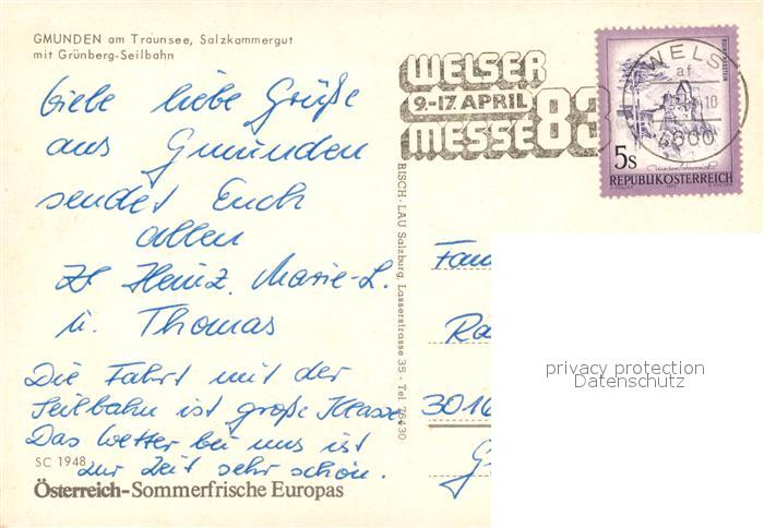 alte Postkarte Seilbahn Gruenberg Gmunden Traunsee postalisch gelaufen Erhaltung siehe scans [PaolaD17]