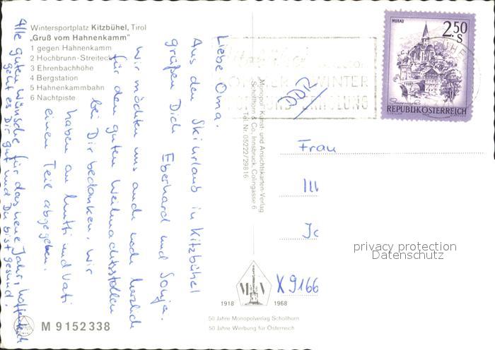 alte Postkarte Seilbahn Hahnenkamm Kitzbuehel Ehrenbachhoehe Hochbrunn-Streiteck postalisch gelaufen Erhaltung siehe scans