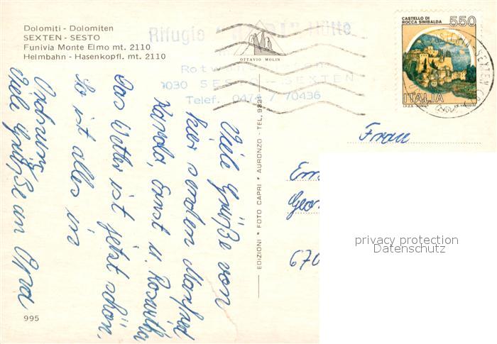 alte Postkarte Seilbahn Helmbahn Hasenkopfl Funivia Monte Elmo Sexten Sesto postalisch gelaufen Erhaltung siehe scans [PaolaD17]