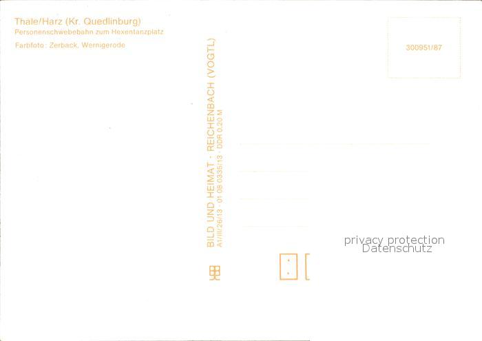 Seilbahn Hexentanzplatz Thale Harz postalisch nicht gelaufen Erhaltung siehe scans