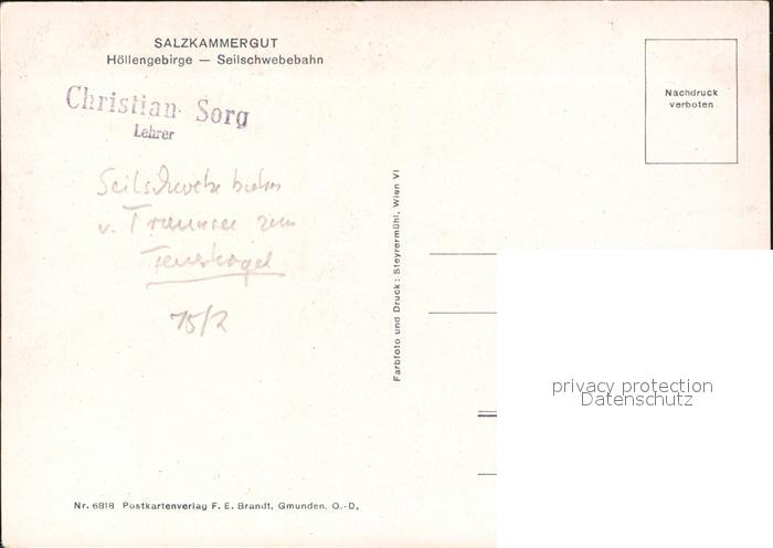 72510439 Seilbahn Höllengebirge Salzkammergut KatCode 22040000000400