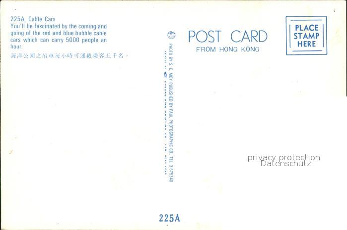Seilbahn Hong Kong postalisch nicht gelaufen Erhaltung siehe scans