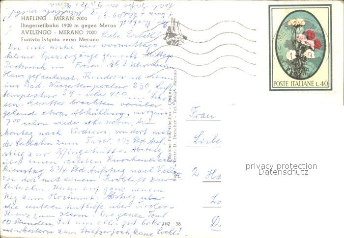 alte Postkarte Seilbahn Ifinger Hafling Meran Avelengo Merano postalisch gelaufen Erhaltung siehe scans