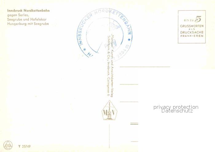 Seilbahn Innsbruck Nordkettenbahn Serles Seegrube Hafelekar postalisch nicht gelaufen Erhaltung siehe scans [PaolaD17]