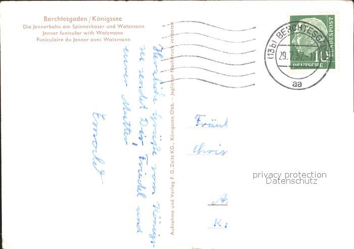 alte Postkarte Seilbahn Jenner Spinnerkaser Watzmann Berchtesgaden Koenigssee postalisch gelaufen Erhaltung siehe scans
