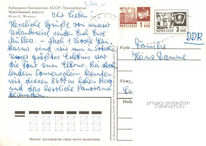 alte Postkarte Seilbahn Kabardino Balkarien postalisch gelaufen Ganzsache (eingedruckte Briefmarke) Erhaltung siehe scans [PaolaD17]