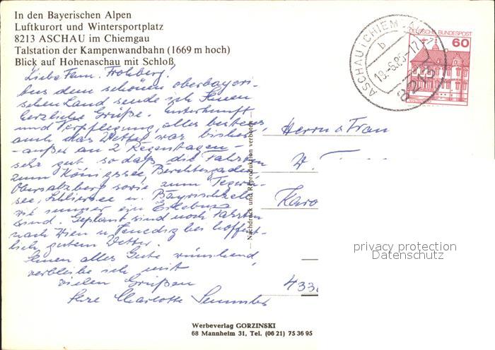 alte Postkarte Seilbahn Kampenwand Aschau im Chiemgau Schloss postalisch gelaufen