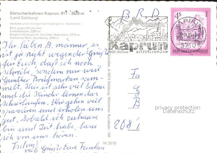 alte Postkarte Seilbahn Kaprun Kitzsteinhorn Zell am See Krefelderhuette postalisch gelaufen