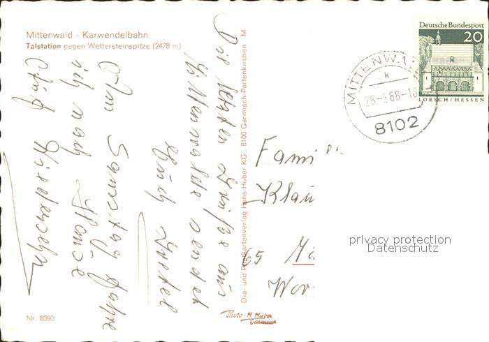 alte Postkarte Seilbahn Karwendel Mittenwald Talstation Wettersteinspitze postalisch gelaufen Erhaltung siehe scans