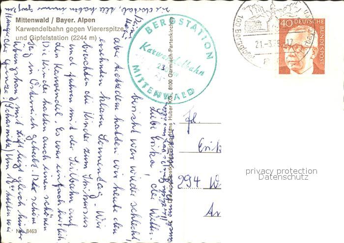 alte Postkarte Seilbahn Karwendel Mittenwald Vierenspitze postalisch gelaufen Erhaltung siehe scans