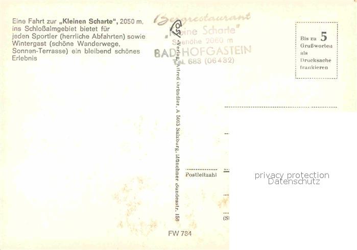 Seilbahn Kleine Scharte Bad Hofgastein postalisch nicht gelaufen Erhaltung siehe scans [PaolaD17]