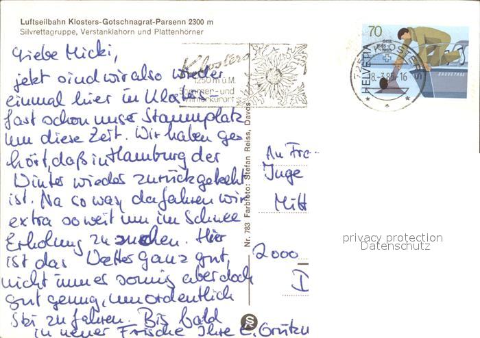 alte Postkarte Seilbahn Klosters-Gotschnagrat-Parsenn Silvrettagruppe postalisch gelaufen Erhaltung siehe scans