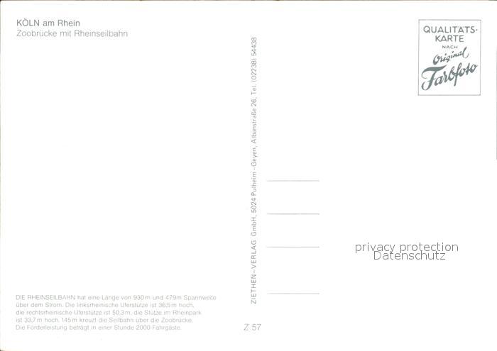 Seilbahn Koeln am Rhein Zoobruecke postalisch nicht gelaufen Erhaltung siehe scans