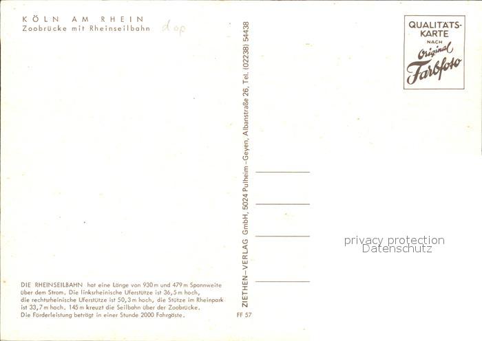 Seilbahn Koeln Zoobruecke postalisch nicht gelaufen Erhaltung siehe scans