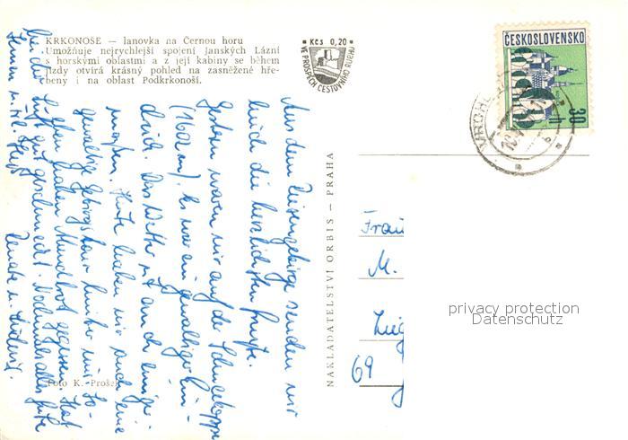 alte Postkarte Seilbahn Krkonose Lanovka na Cernou Horu postalisch gelaufen Erhaltung siehe scans [PaolaD17]