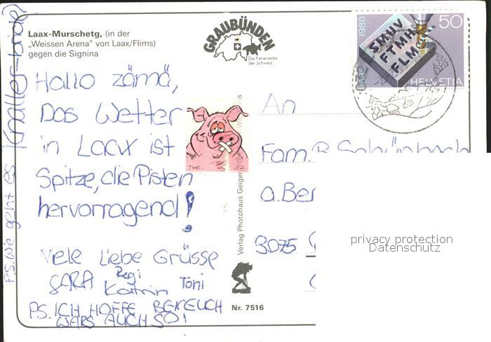 alte Postkarte Seilbahn Laax-Murschetg Signina postalisch gelaufen Erhaltung siehe scans